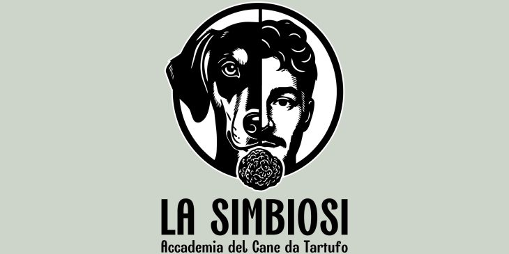 Il logo dell’Accademia del Cane da Tartufo “La Simbiosi” rappresenta visivamente l’unione indissolubile tra l’uomo e il suo compagno a quattro zampe. Attraverso una composizione speculare, i volti (che rispecchiano fedelmente il ritratto del cliente e del suo amato cane) si fondono in un’unica entità, culminando nel cuore della loro ricerca: il tartufo.